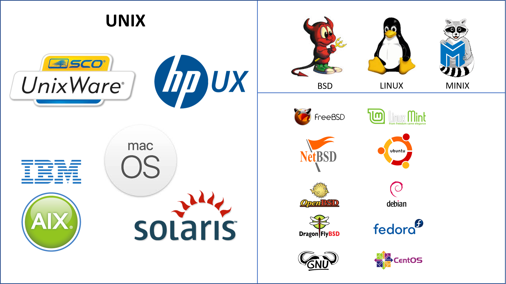 Desde su aparición en 1970 han existido muchas derivaciones del sistema operativo UNIX ya sea porque se utilizó parte del código o fueron reescritos completamente, pero que emulan todas o algunas de sus características.