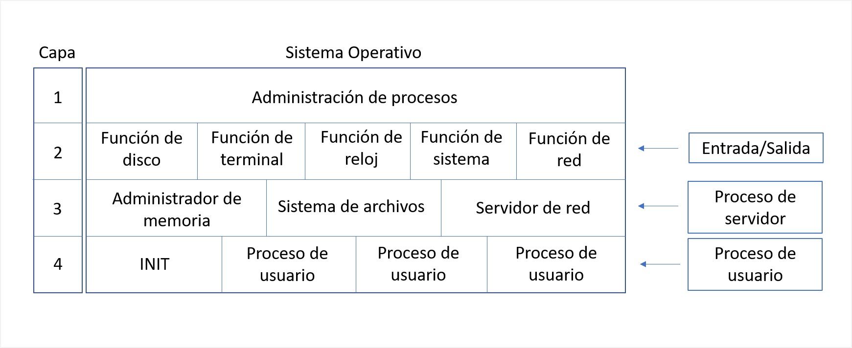 - Capa 3: Todos los procesos de tipo de servidor como el sistema de archivos, el manejo de la memoria que les fue asignada y de red.