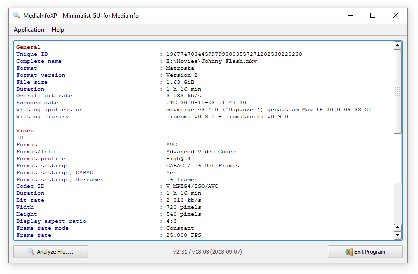 Herramienta para ver información técnica de archivos multimedia.