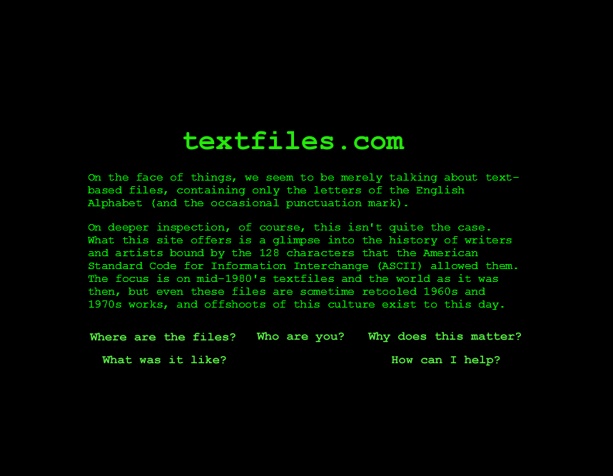 Se han guardado muchas cosas a través del tiempo en formato de archivo .txt y este sitio los tiene casi todos. Hack en internet.