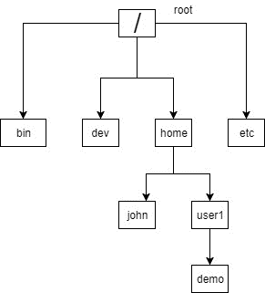 - Root File System: /bin, /etc, /dev, /lib
